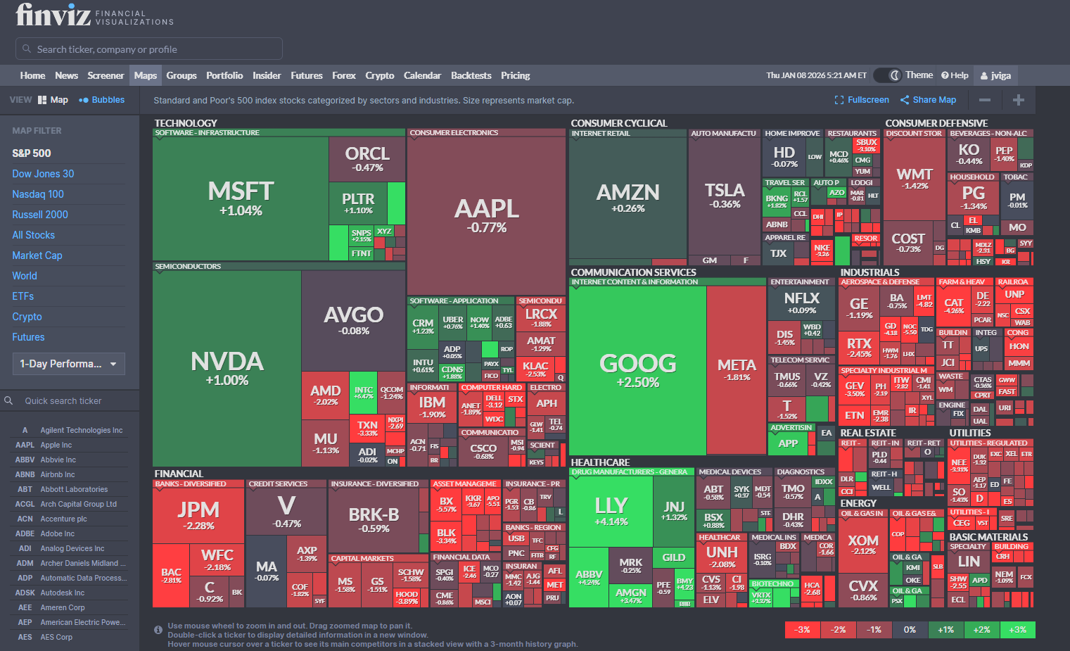 Heat Maps: Visual representation of market performance, color-coded by sector and size. It’s an intuitive way to see what’s working and what’s not at a glance.