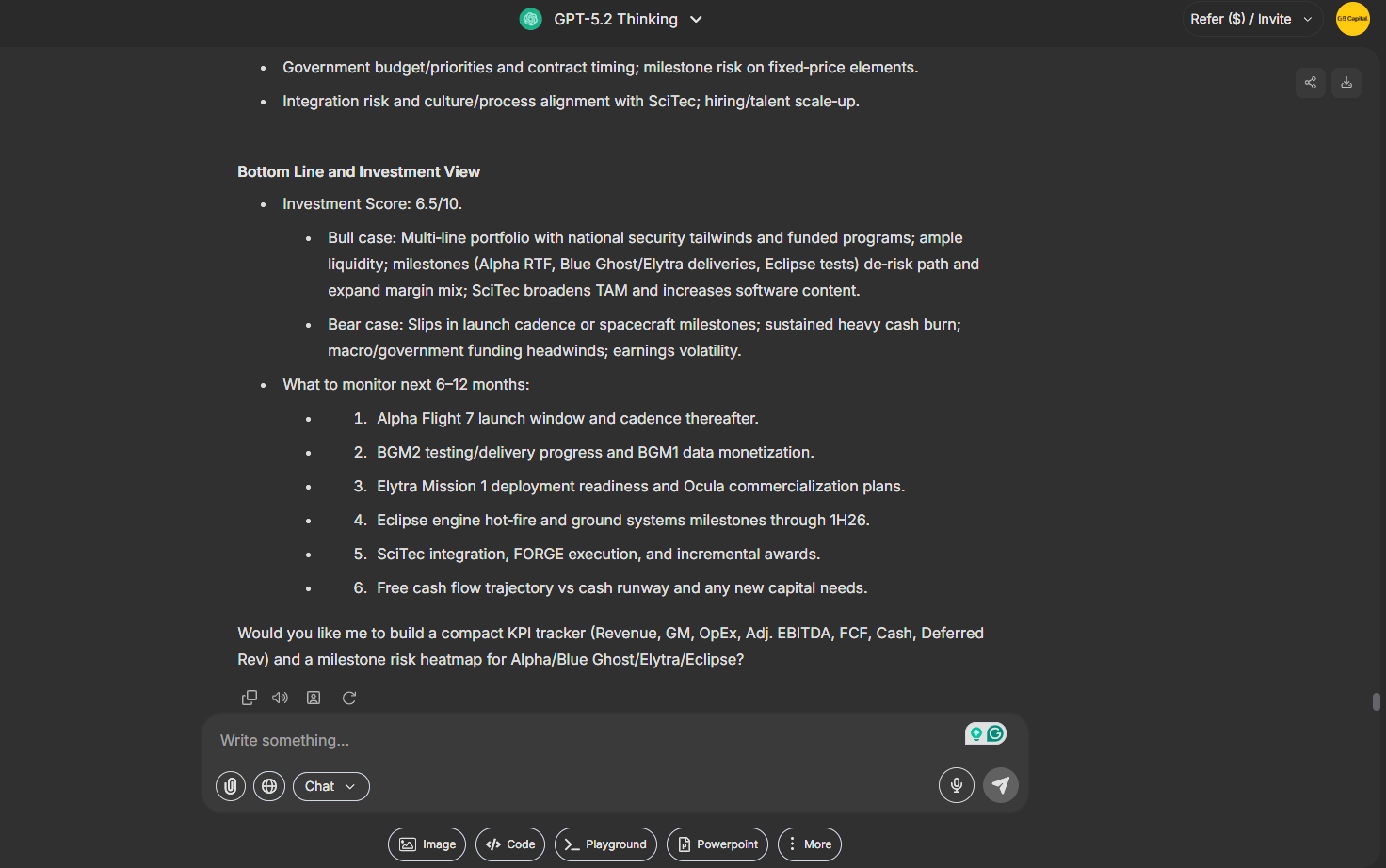 Claude: Our go-to for generating investment ideas, analyzing complex scenarios, and getting nuanced perspectives on market dynamics. Claude tends to provide more thoughtful, balanced analysis.