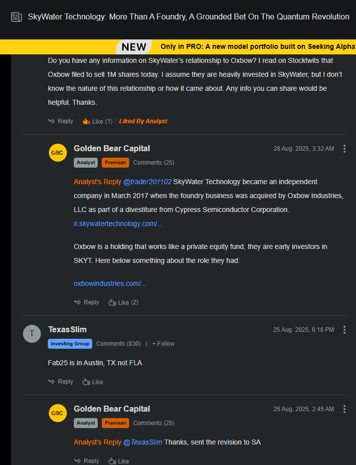Seeking Alpha — Supplemental research on unfamiliar companies