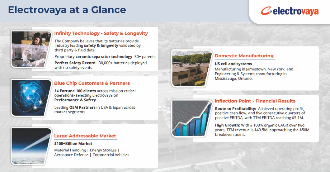 Electrovaya has solidified relationships with forklift OEMs and large industrial end-users and increasingly aims for growth in the United States, supported by its manufacturing expansion in New York State.