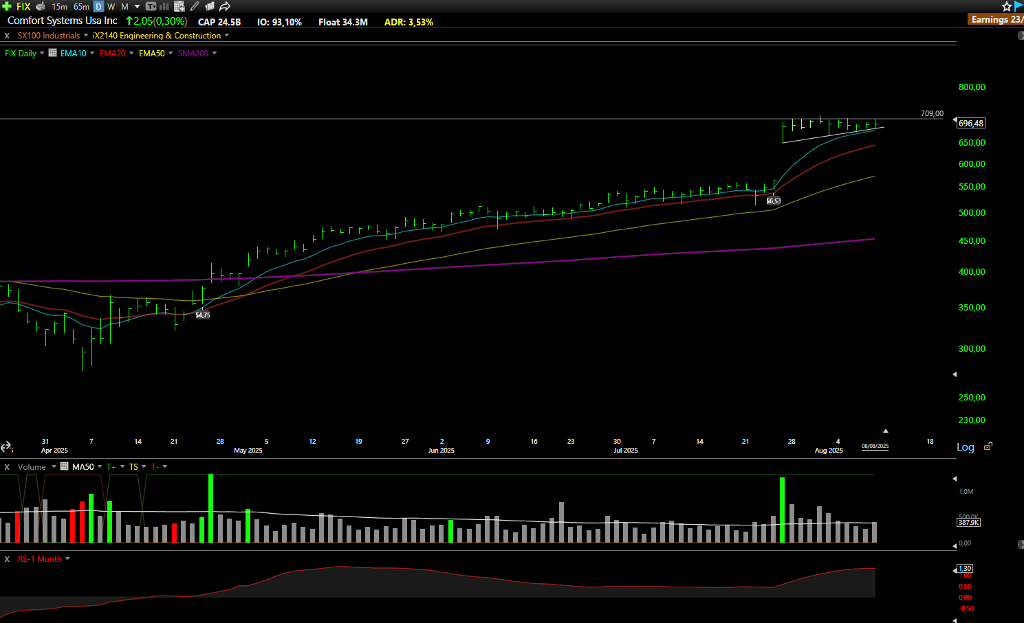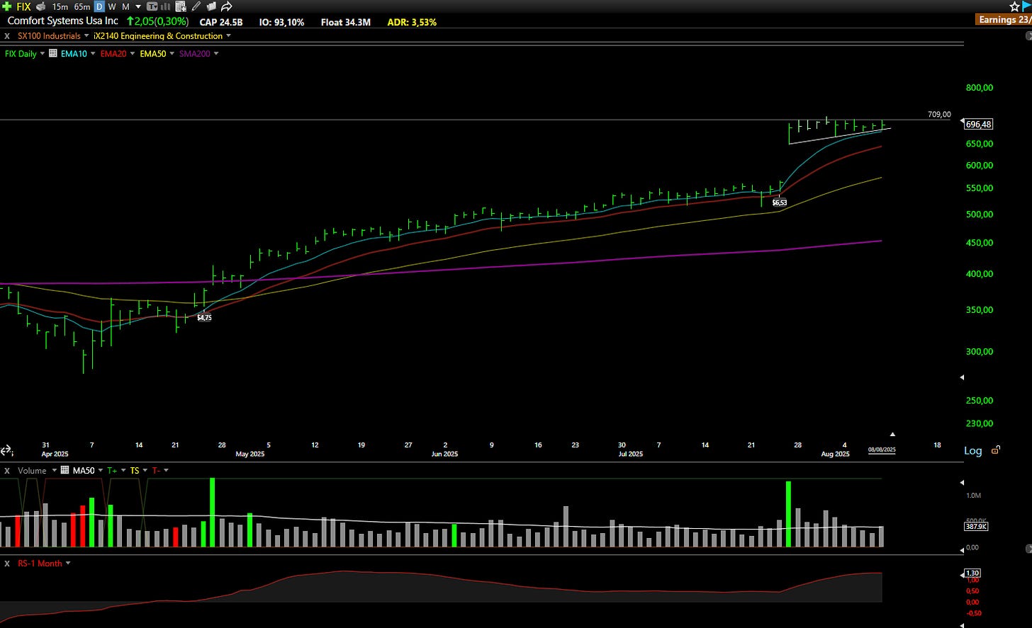 Why watch? 🛠️ Following a strong earnings report at the end of July, the stock gapped up and is now digesting the move while holding above its 10-day EMA. A couple more days of sideways consolidation could improve the setup from good to ideal. The key level to watch for a breakout is $709.00.