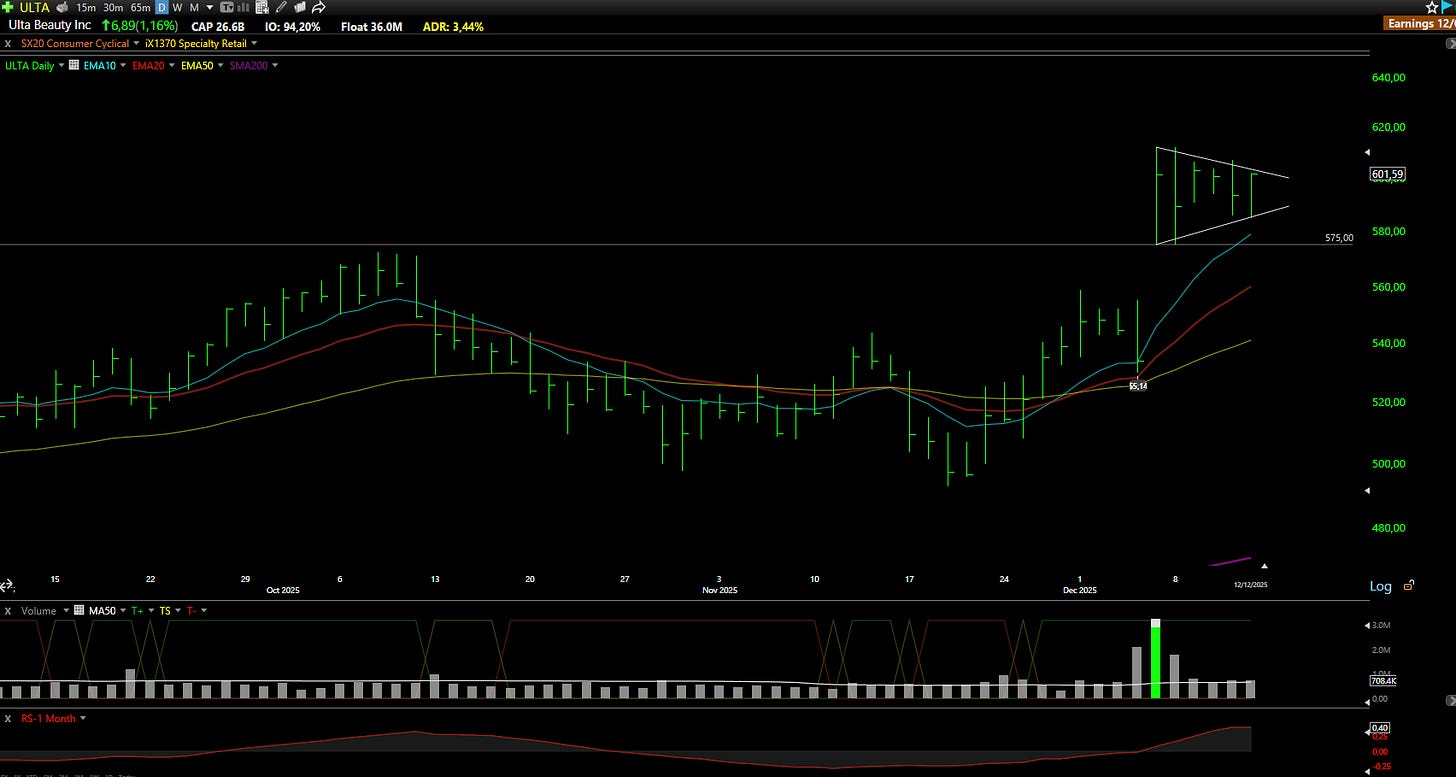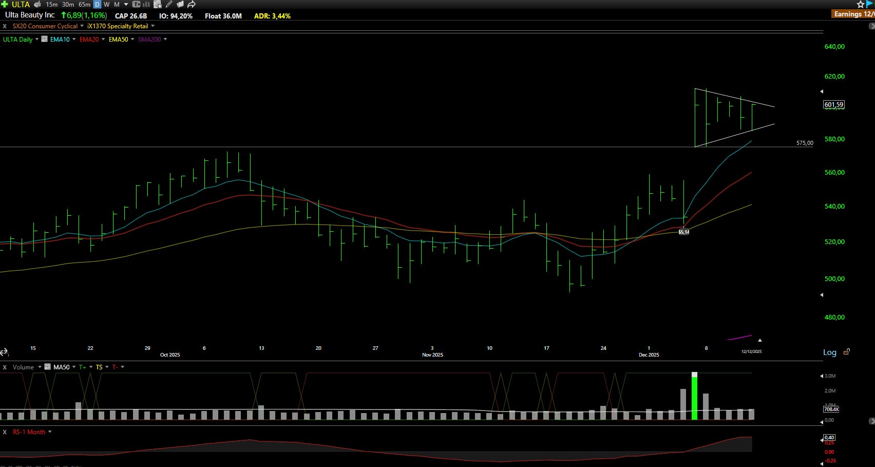 Why watch? Ulta Beauty delivered a blowout quarter that exceeded expectations across all key metrics, triggering a strong market reaction. Revenue came in at $2.86 billion, up 12.9% year-over-year, while earnings per share of $5.14 beat analyst estimates by $0.56. The company is also aggressively returning capital to shareholders during the quarter. Ulta repurchased 400,000+ shares, bringing the nine-month total to 1.5+ million shares retired. Following the strong Q3 beat, management raised guidance for the next quarter. More importantly for long-term investors, the CEO provided unusually clear guidance on the 2026 outlook, stating that next year will not be another heavy investment cycle and that margins should remain at least at 2025 levels. This signals a shift toward margin expansion and improved profitability after a period of growth investments, making the earnings trajectory more predictable and attractive.