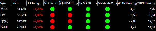 Breadth indicators arenât helping either. T2118 is at 75.79, not overheated yet (weâd need to see 90.00 for that), but definitely above the caution line of 70.00. Weâre in that uncomfortable middle zone where anything can happen.