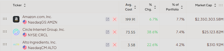Every position we hold. Entry price. Current P&L. Stop level. Real money, real risk.