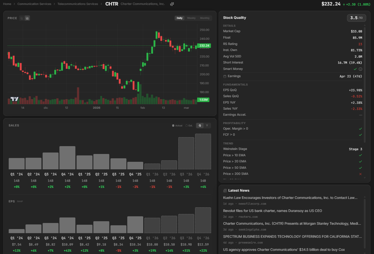 Why watch? In a market dominated by AI headlines and momentum-driven narratives, Charter Communications represents the kind of overlooked, cash-generative business that tends to reward patient investors. The stock isn’t extended, the sector isn’t fashionable, and that’s precisely the point.