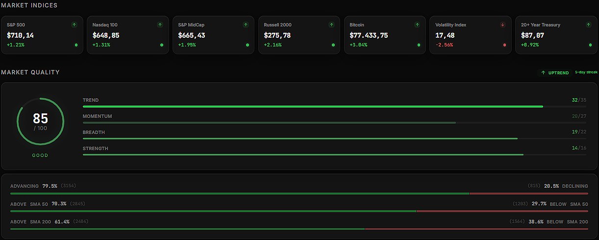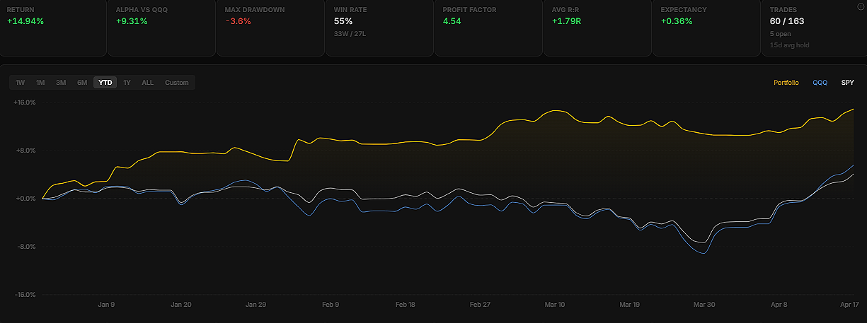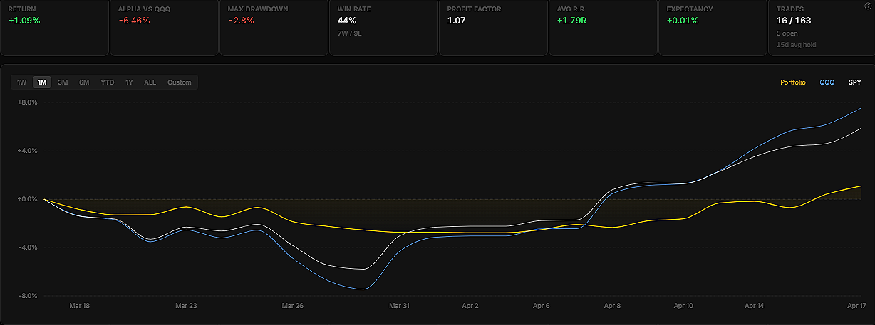 We moved from a market environment that looked extremely fragile, with a very real risk of a deeper correction driven by negative headlines and ongoing geopolitical tensions, into a rally that very few could have anticipated in both speed and magnitude, with the Nasdaq gaining roughly 16% in the span of just two weeks, which is the kind of move that doesn’t just catch you off guard, it forces you to constantly question whether you’re reading the market correctly at all.