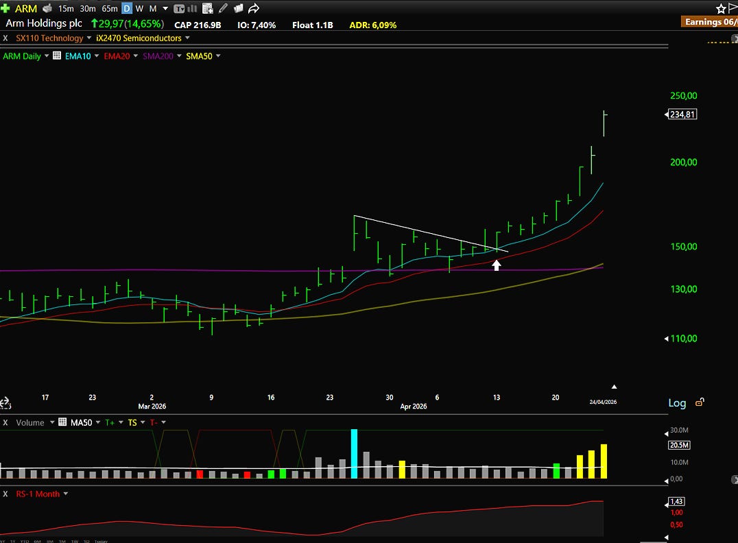 Probably one of the cleanest executions we’ve had in recent months. The position sizing was right from the start, the risk was well defined, and the broader market provided the tailwind. The theme was aligned with current narratives around CPU constraints, and the sector, semiconductors, was clearly in a position of strength.